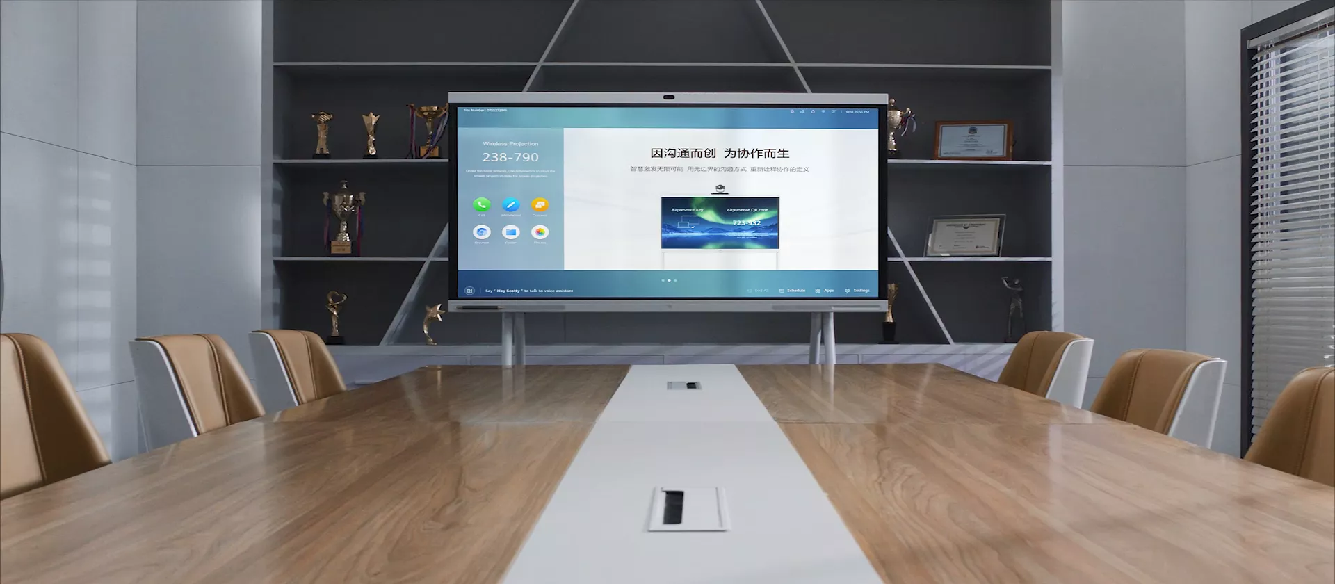 内置华为云会议,扫码一键入会?,同时支持智能语音助手,简单易用;